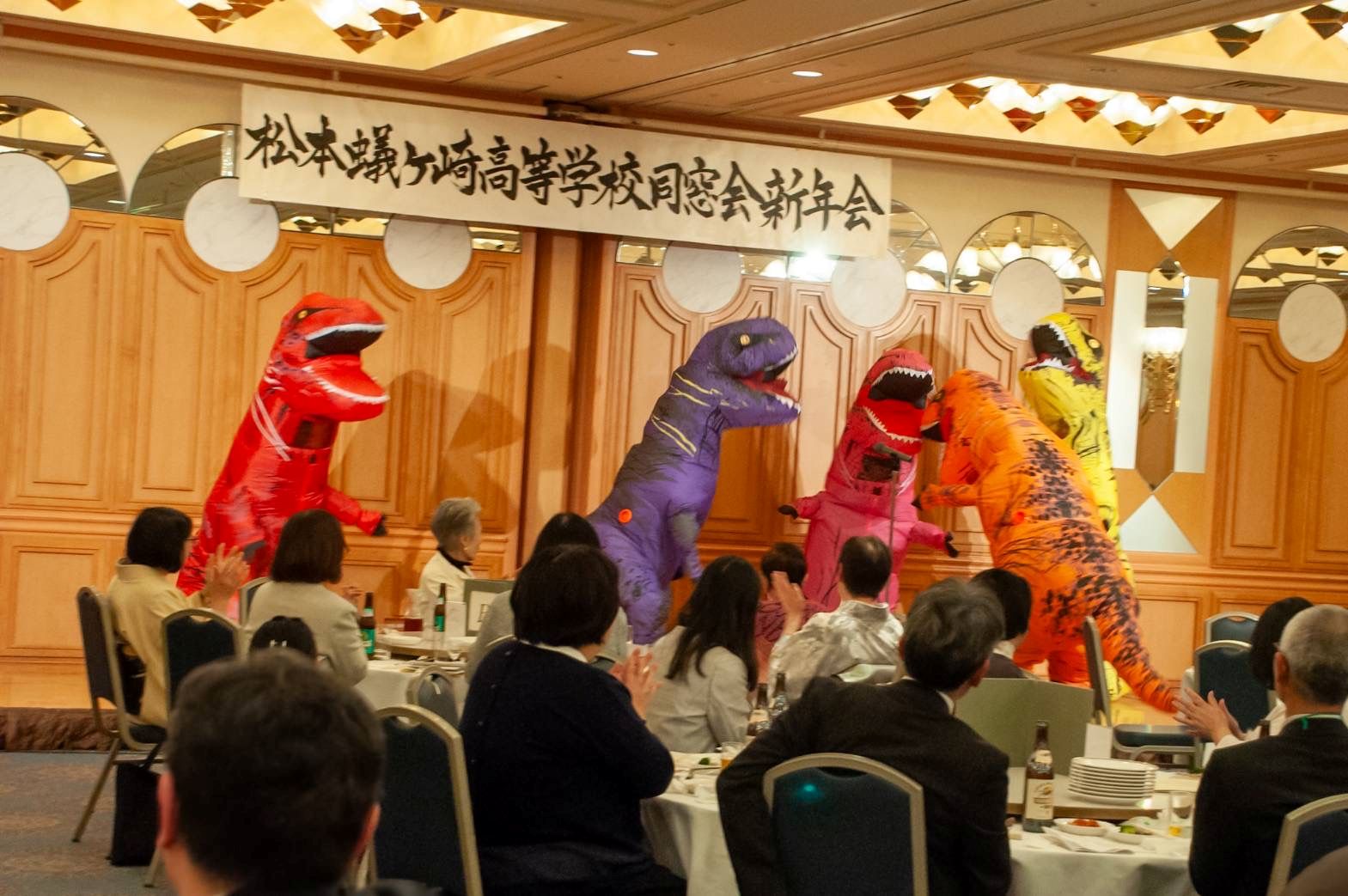 母校・PTAからの余興では、風船の様な大きな恐竜が5体、